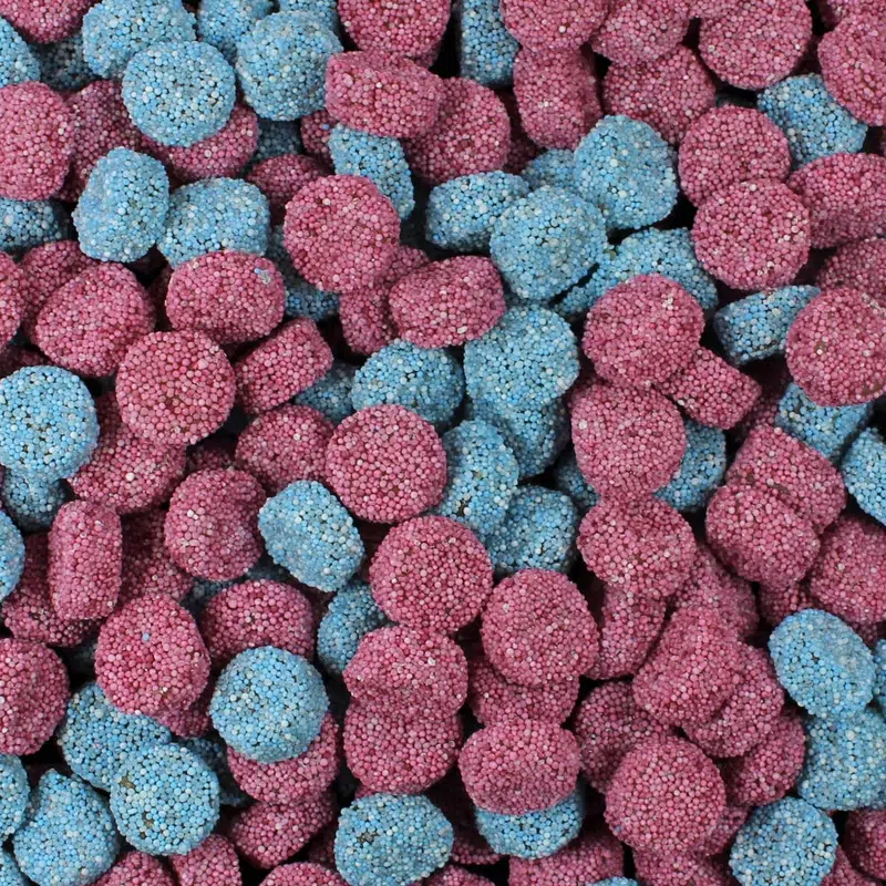 A vintage-style treat: chewy aniseed jelly sweets dressed in eye-catching pink and blue candy beads, delivering a satisfying mixture of texture and flavour.